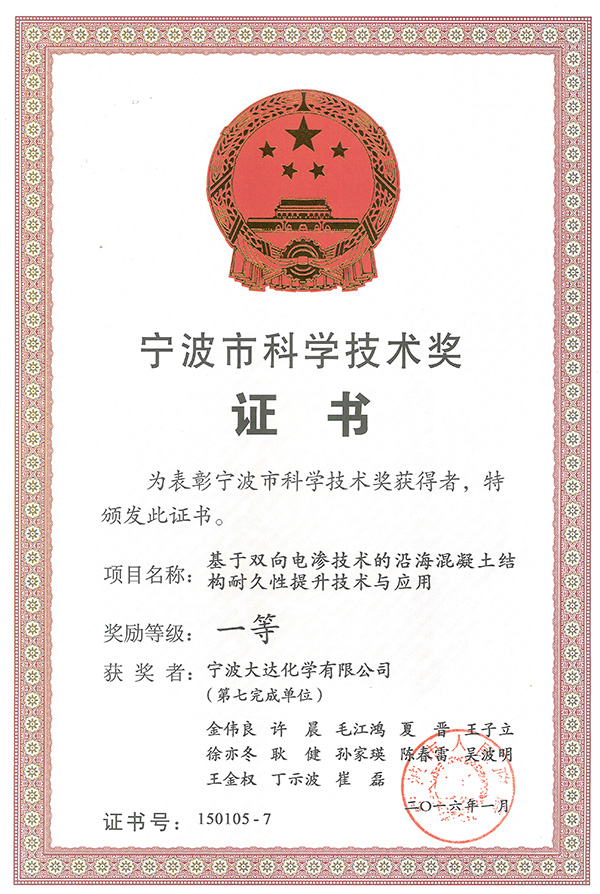 ↑科学技术奖励-中国腐蚀秘防护学会 ↑宁波科学技术奖励