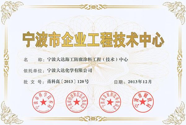 ↑重防腐涂料工程技术研究中心 ↑宁波市企业工程技术中心